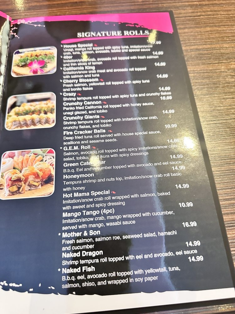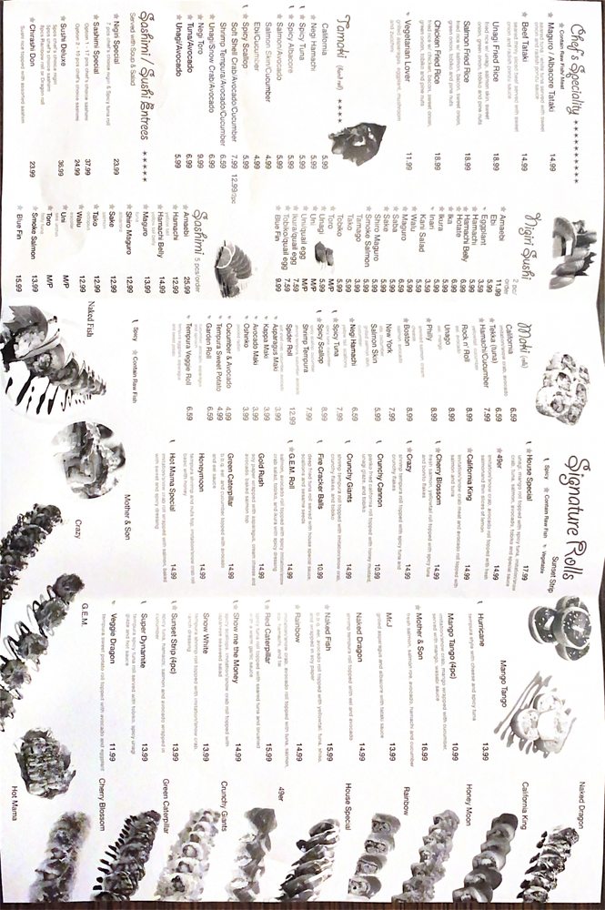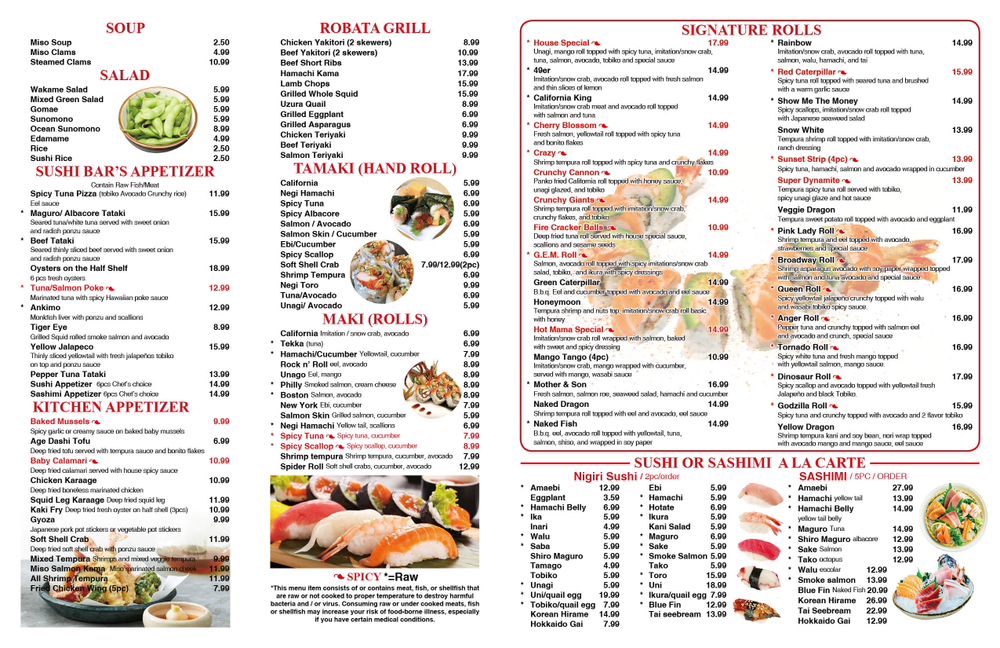 California roll pcs, dragon roll pcs, nigiri pcs, shrimp tempura roll pcs, super dynamite roll pcs, rainbow roll pcs, sashimi pcs, house special roll pcs.